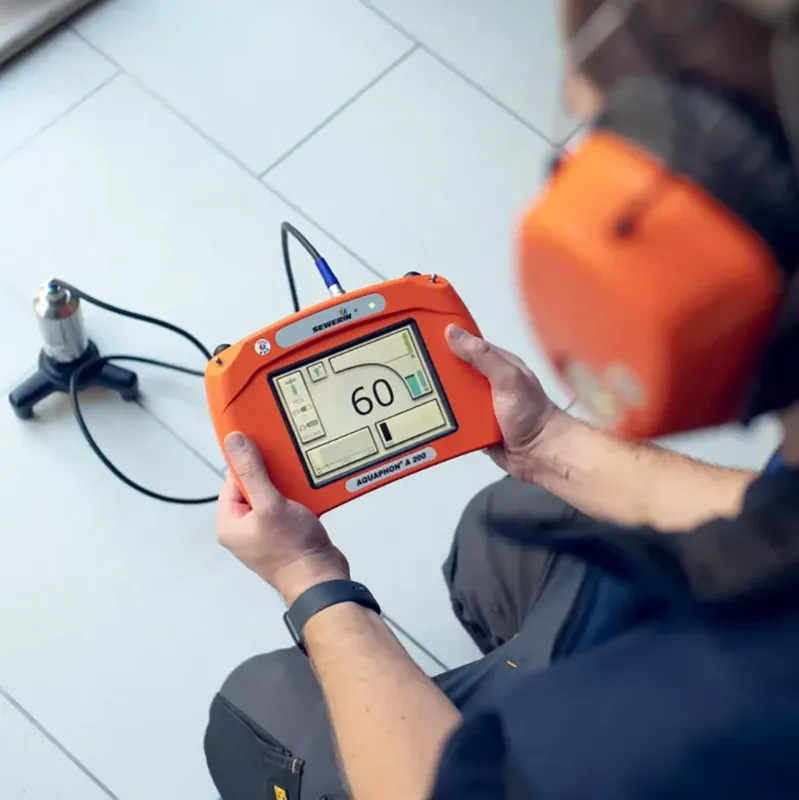 صدای خروج آب تحت فشار (حتی در حد میکرو) توسط سنسورهای حساس زمینی ضبط شده و محل نشتی در سیستم گرمایش از کف با دقت سانتیمتری مشخص میشود. این روش برای تشخیص نشتهای بسیار کوچک ایدهآل است.