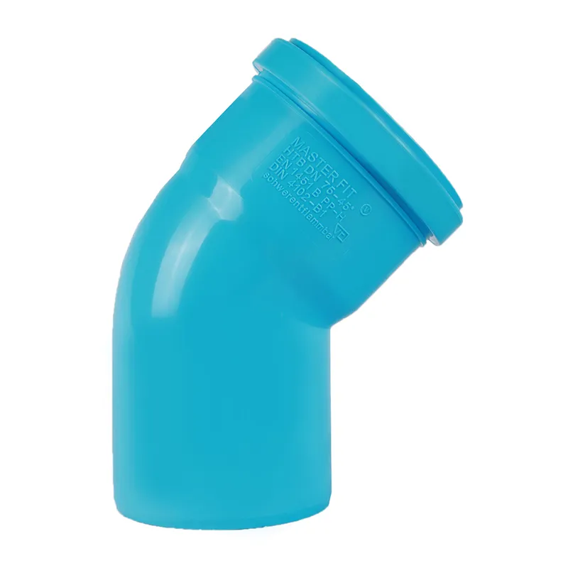 زانوی پوشفیت ۴۵ درجه مسترفیت اکولاین برای تغییر جهت نرم و کمزاویه در مسیر لولههای فاضلاب داخلی استفاده میشود.