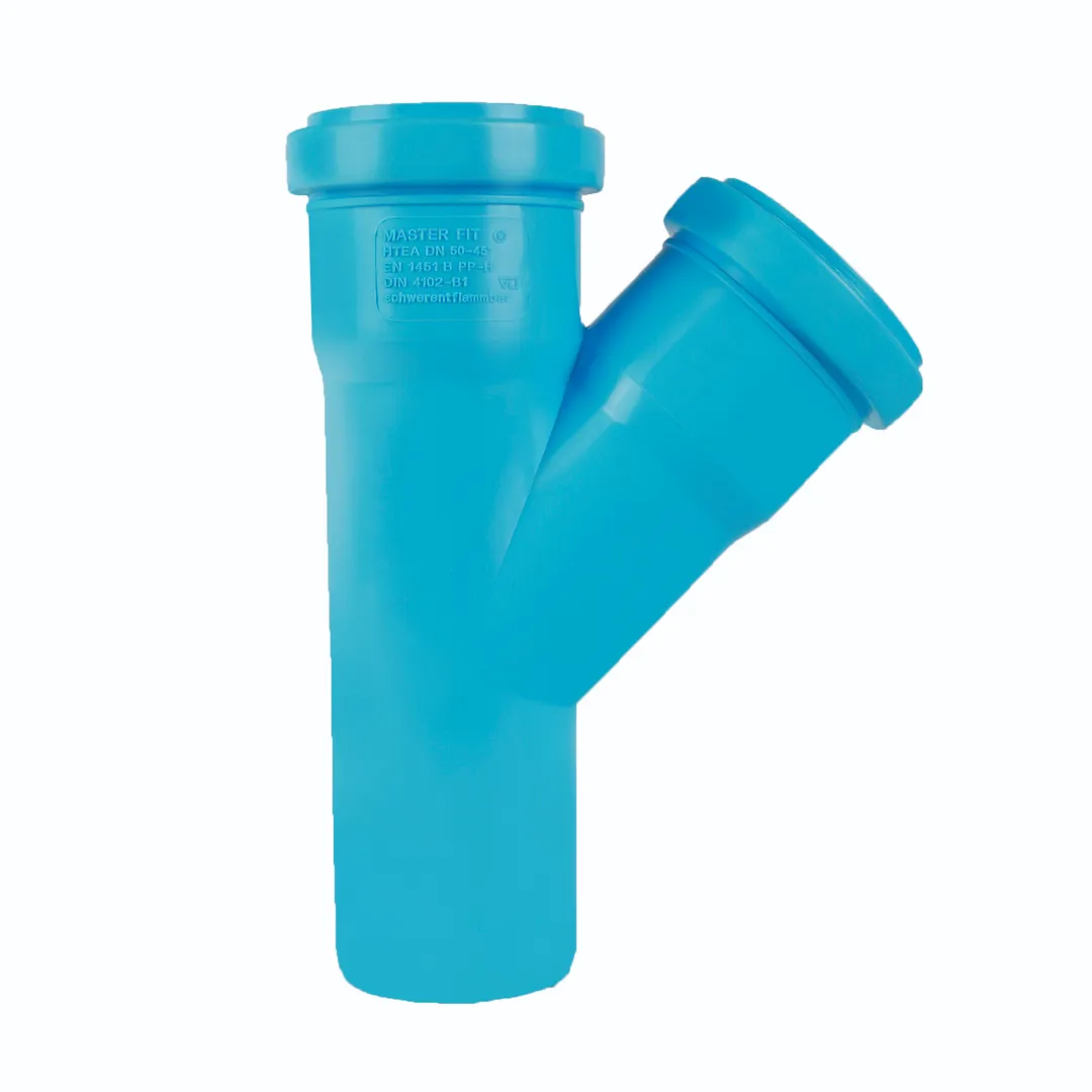 سه‌راهی پوش‌فیت ۴۵ درجه مسترفیت اکولاین برای ایجاد انشعاب با زاویه ملایم ۴۵ درجه در سیستم فاضلاب داخلی استفاده می‌شود.